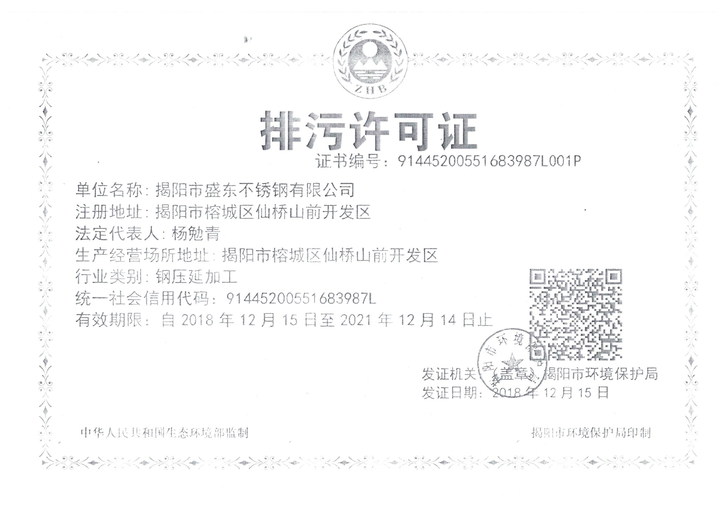 揭陽市盛東不銹鋼有限公司是一家專業(yè)從事不銹鋼壓延加工的企業(yè),位于揭陽市榕城區(qū)仙橋山前開發(fā)區(qū),成立于2010年3月9日,設計年加工生產(chǎn)不銹鋼板材470噸。公司2011年3月通過環(huán)保三同時驗收,2017年5月通過環(huán)保二期驗收,2018年5月通過環(huán)保部完成突發(fā)環(huán)境事件應急預案備案。 |