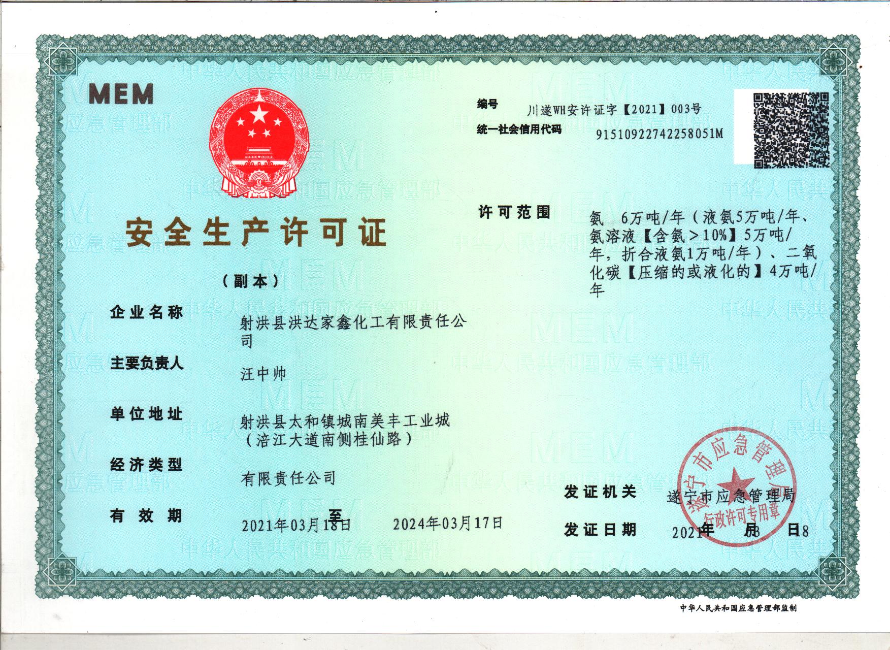射洪縣洪達家鑫化工有限責任公司是一家年產(chǎn)6萬噸合成氨涉農(nóng)企業(yè),成立于2002年8月。公司2005年12月通過環(huán)評驗收。 |